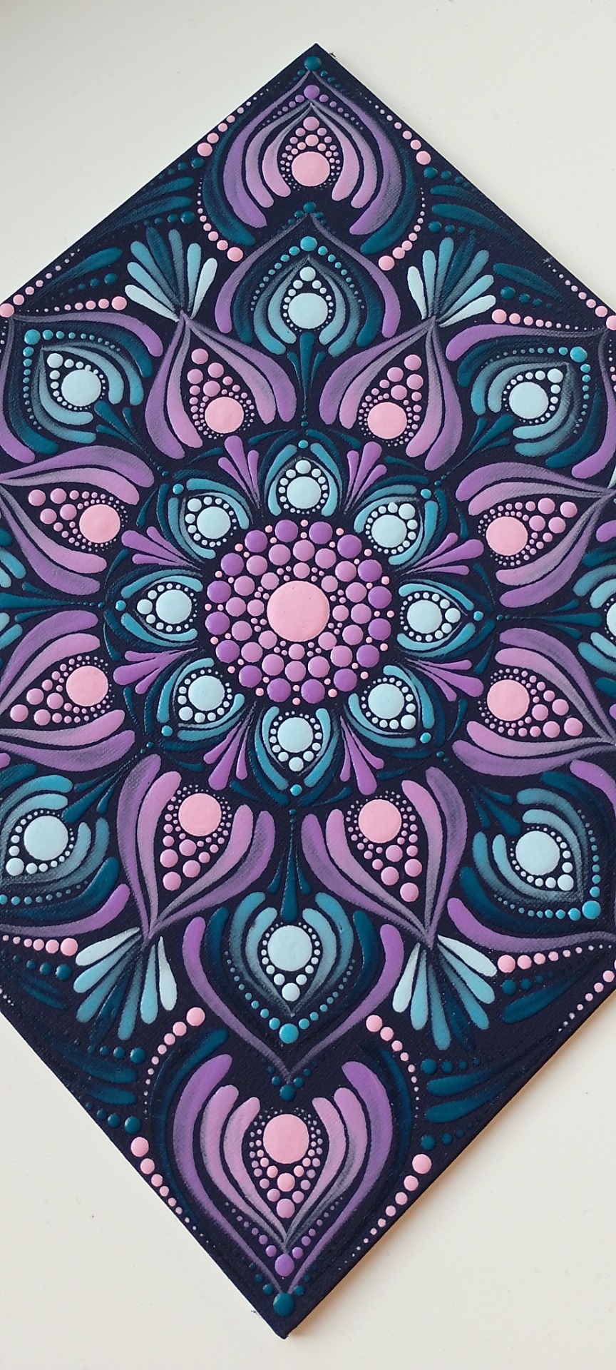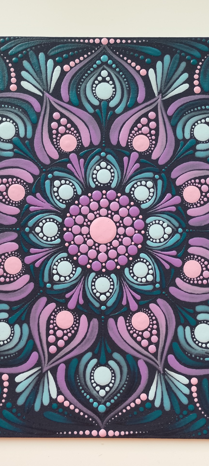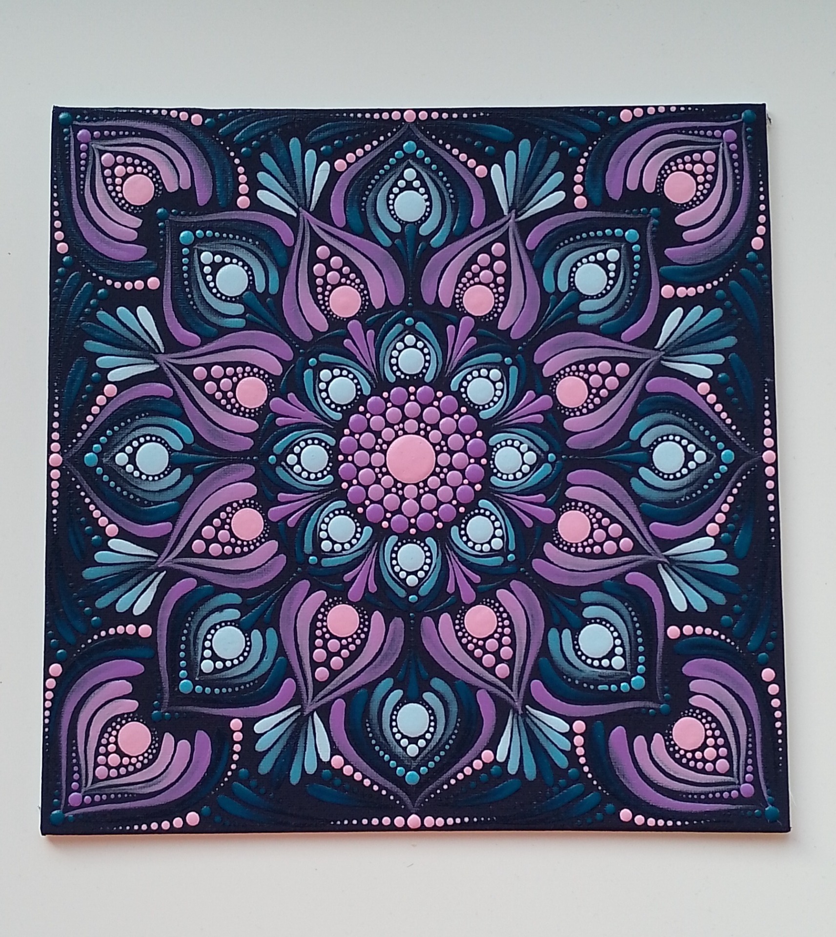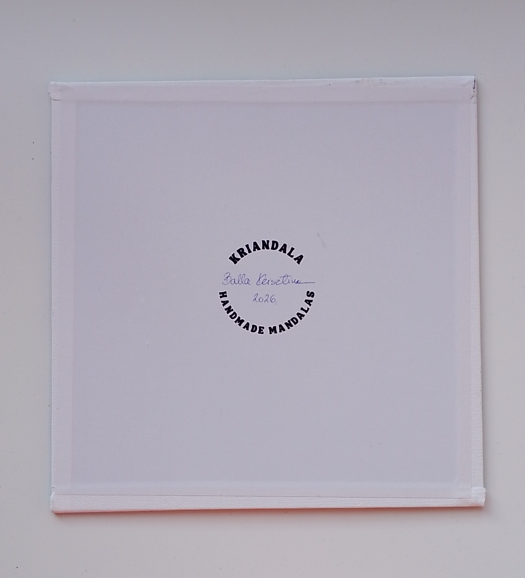 25 x 25 cm, acrylics on canvas panel. A frame is recommended!