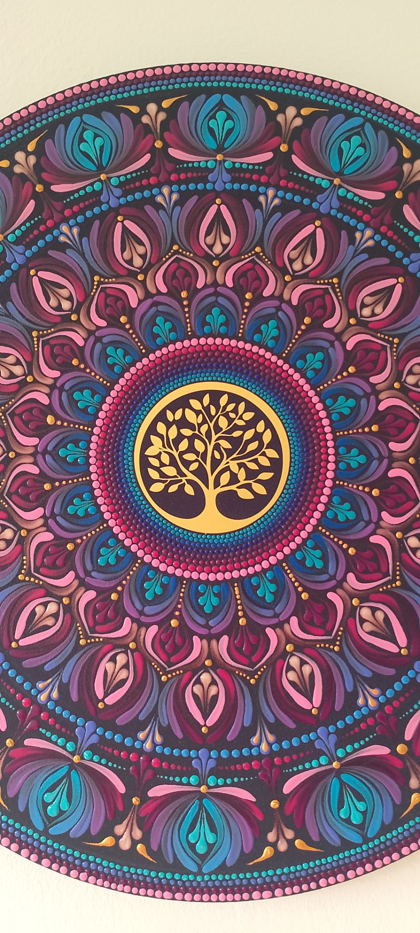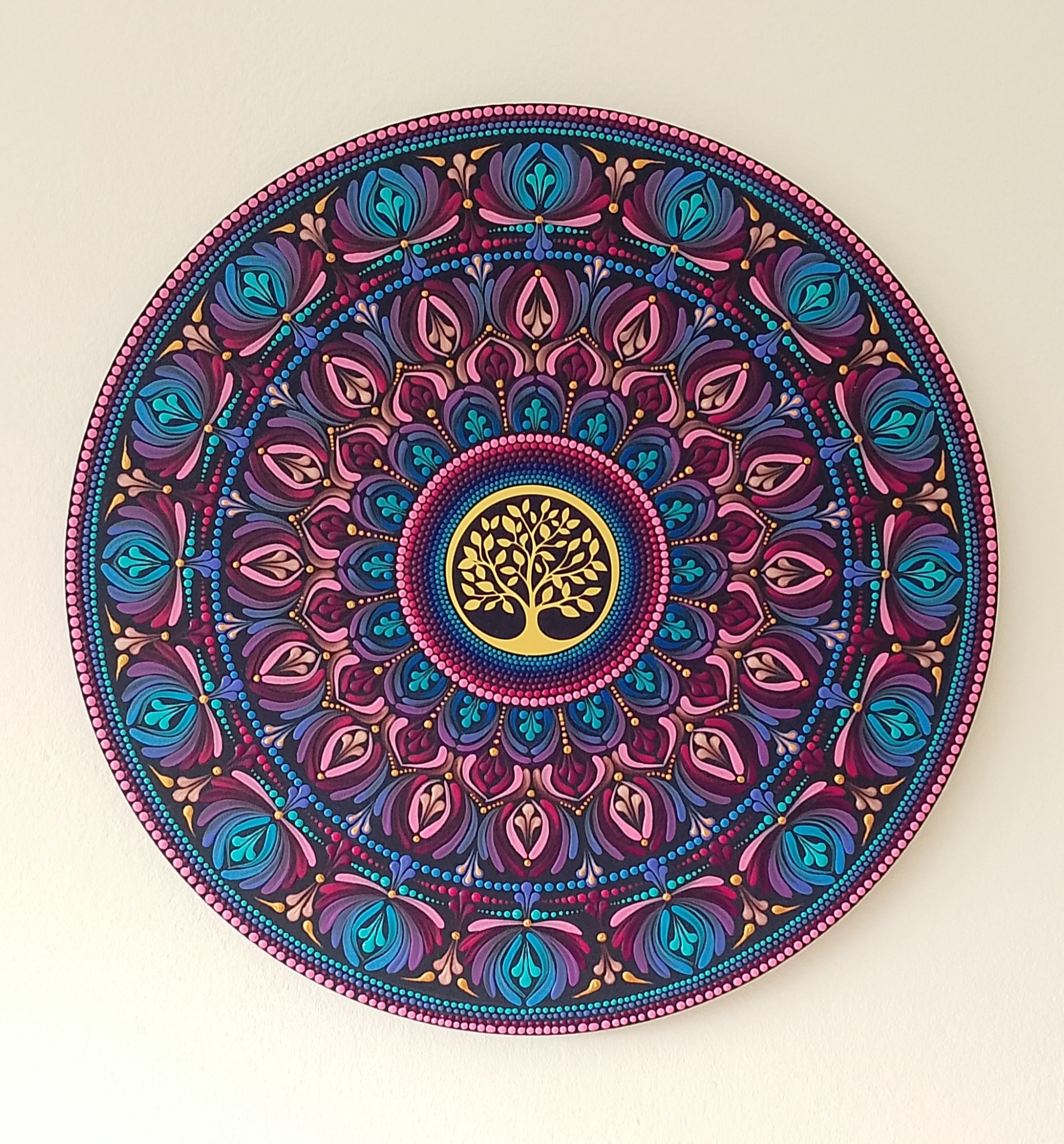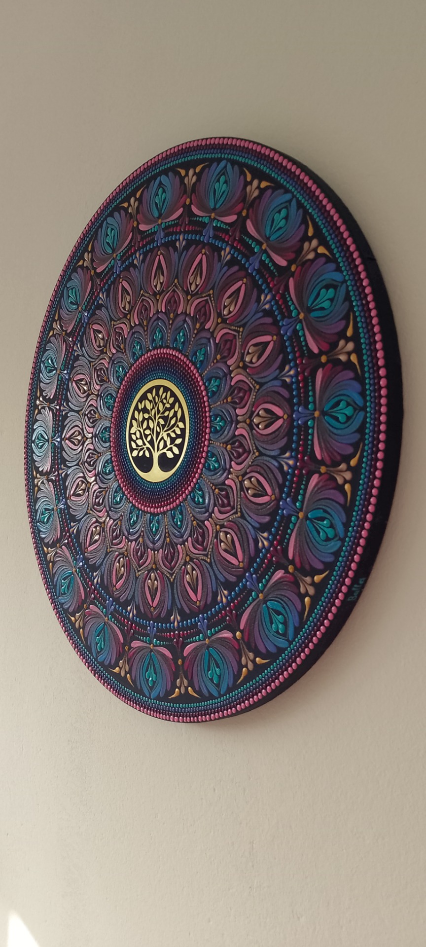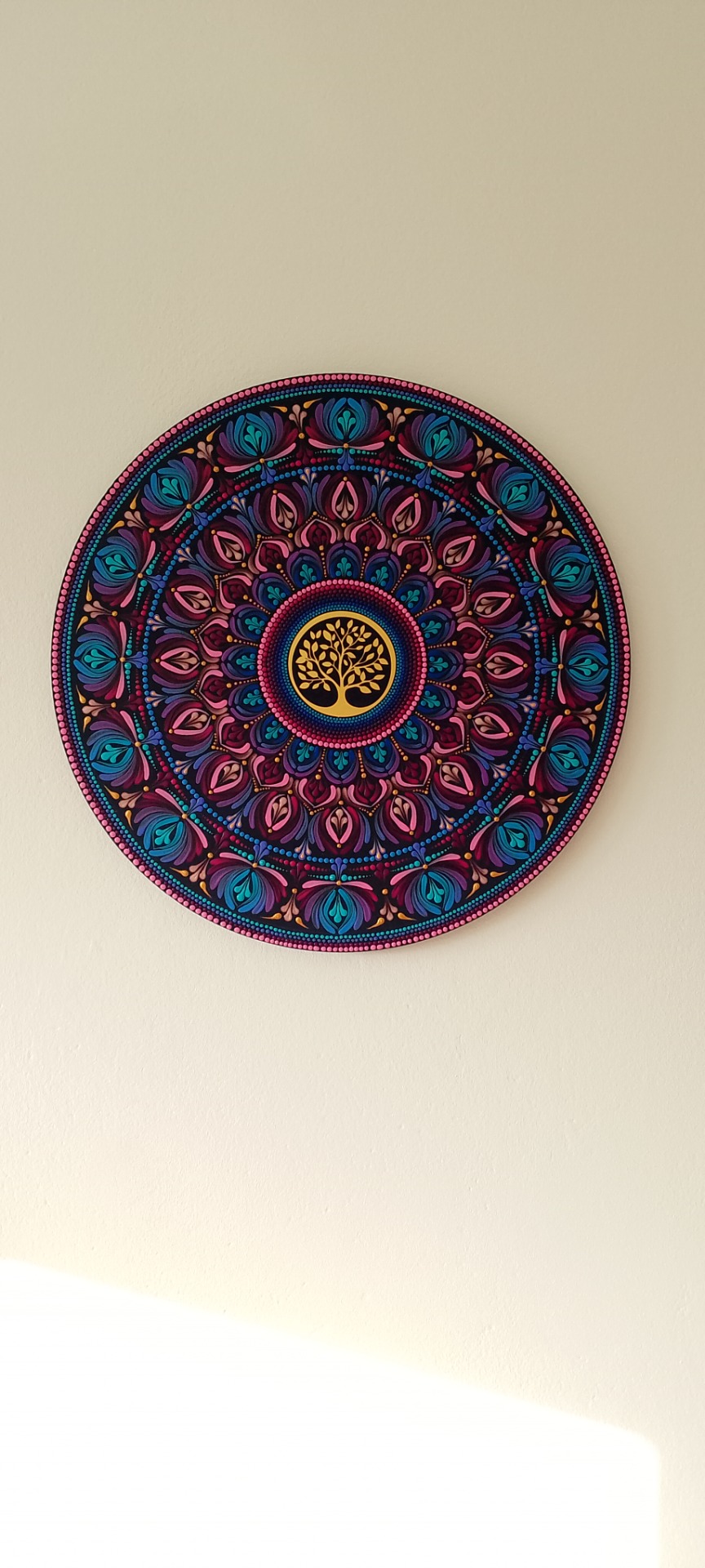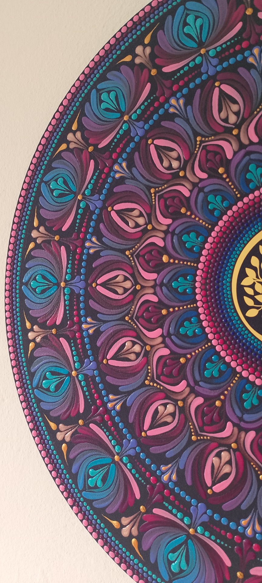 50 cm in diameter, acrylics on streched canvas, ready to hang